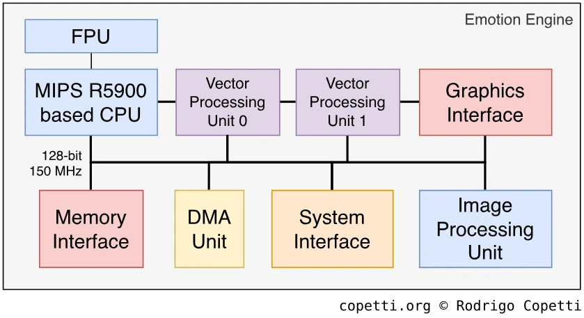 Процессор PS1 (1994). Создан LSI и Sony на основе технологии MIPS.Emotion Engine, процессор PS2 (2001). Создан Toshiba, опять же, на основе технологии MIPS.