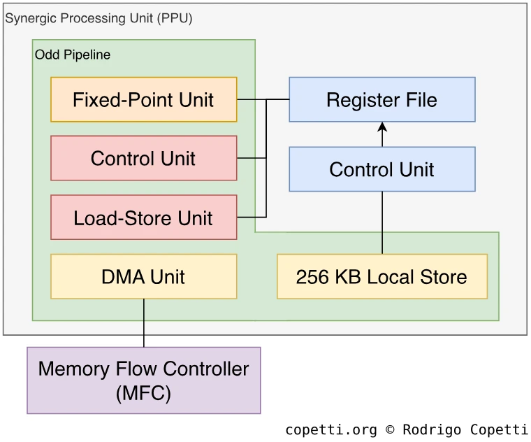 PowerPC Processing Unit (PPU): это логическая часть PPE (“ядро” процессора). Не забудьте, это не PPU от Nintendo PPU! (хоть и они состоят из одних и тех же букв латинского алфавита… в том же самом порядке…).