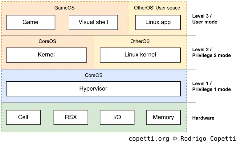 Так получилось, что ядро предоставляет системные вызовы, которые могут быть использованы для перезаписи файлов системы во флэш-памяти. Кроме того, оболочка (XMB) и ее плагины хранят в памяти процедуры, которые используют эти вызовы.