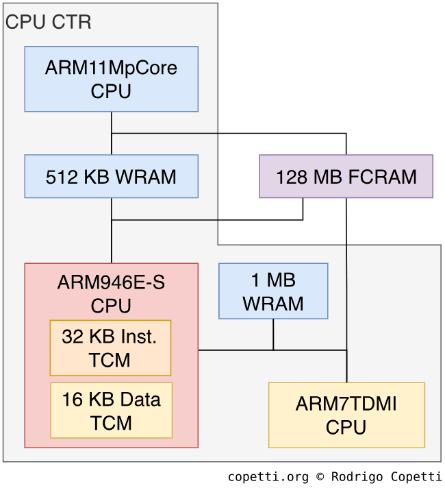 The truth is, Nintendo had extra requirements for this console. They wanted a proper security system, but also the possibility to turn the console into a Nintendo DSi or a GBA on-the-fly. So, for all of that, they ended up bundling three distinct CPU packages - one being the mentioned ARM11. The other two are well hidden, in the sense that games are completely unaware of them. In fact, 3DS emulators like Citra don’t care about them at all [15].