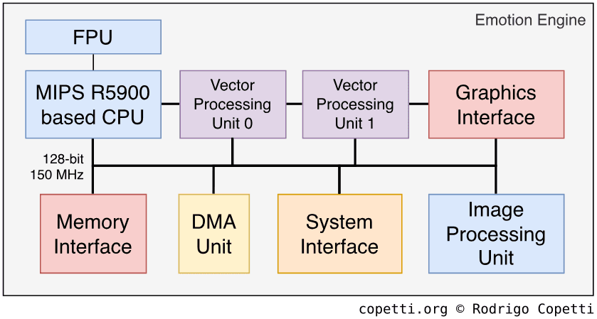 The PS1’s CPU (1994). Designed by LSI and Sony, using MIPS’ technology.The PS2’s Emotion Engine (2001). Designed by Toshiba, with MIPS’ technology, again.