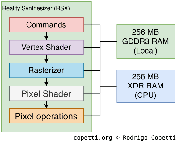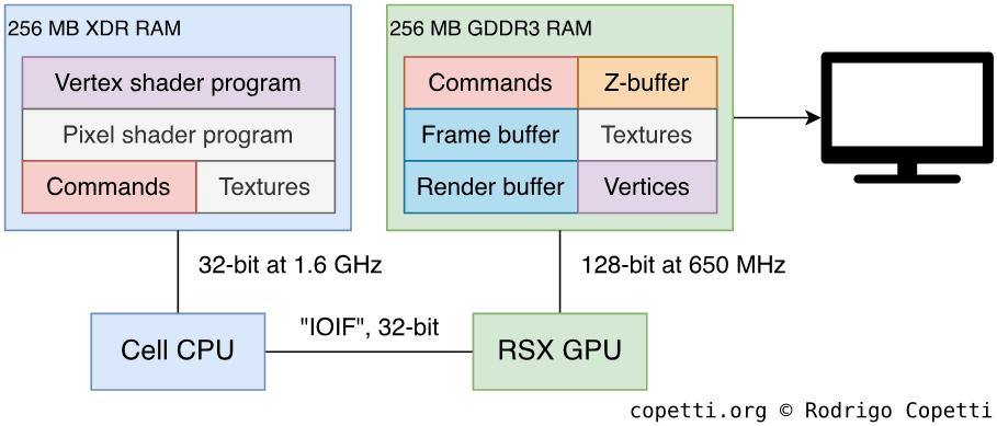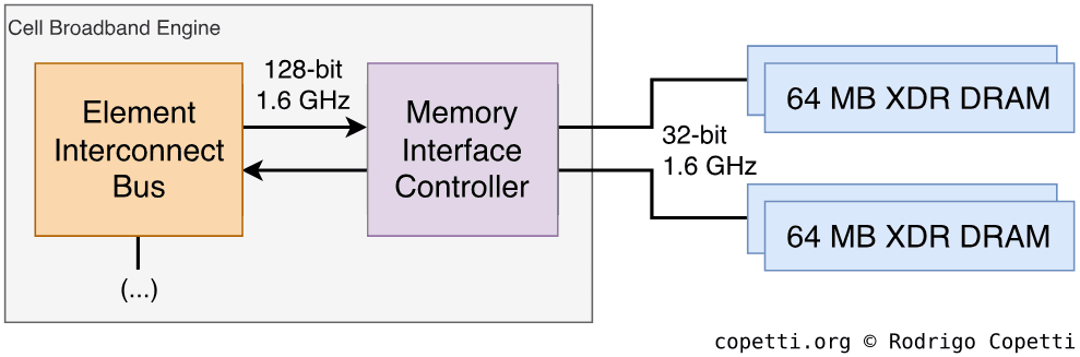 Thus, Sony fitted 256 MB of XDR DRAM on the motherboard… But, again, what does this mean? To answer that, we need to take a look at how the memory blocks work and how they connect to Cell.