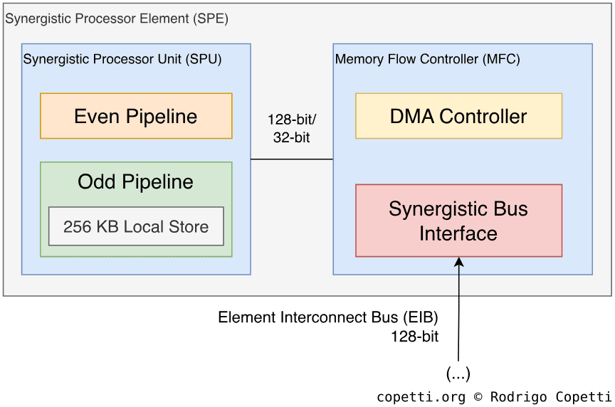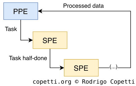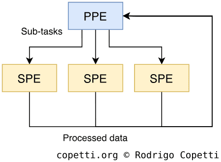 The assistants: these are as crucial as the PPE, but their capabilities are limited to an assistant/accelerator role. This group comprises eight Synergistic Processing Elements (SPEs).