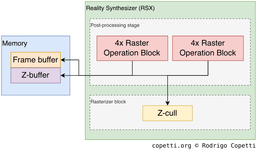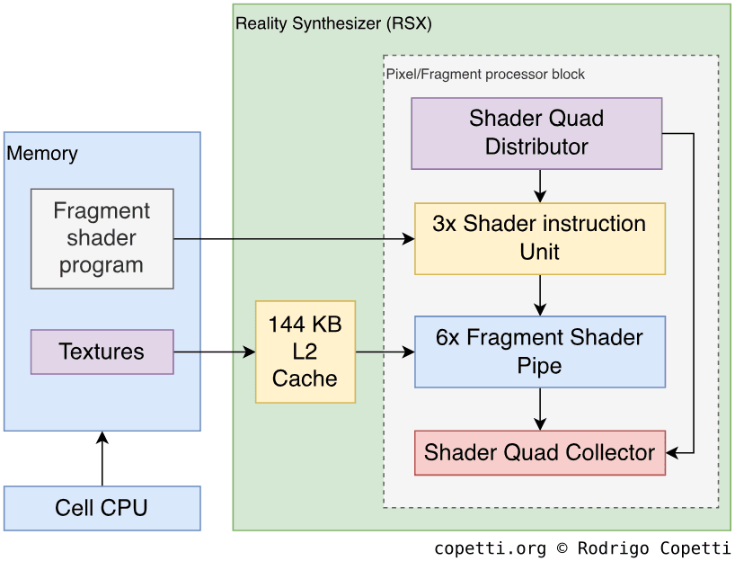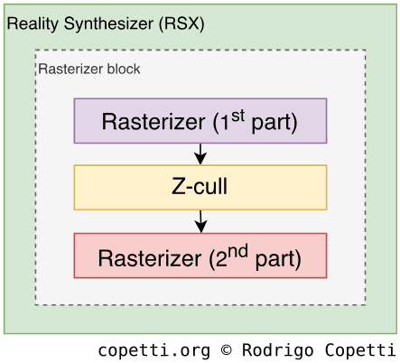 By applying a ‘microscopic’ view to the PPU, we can observe this unit is composed of different blocks or sub-units which perform independent operations (load values from memory, carry out arithmetic, etc). The capabilities of the PPU are defined by what each block can do and how: