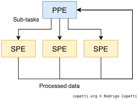 The assistants: these are as crucial as the PPE, but their capabilities are limited to an assistant/accelerator role. This group comprises eight Synergistic Processing Elements (SPEs).