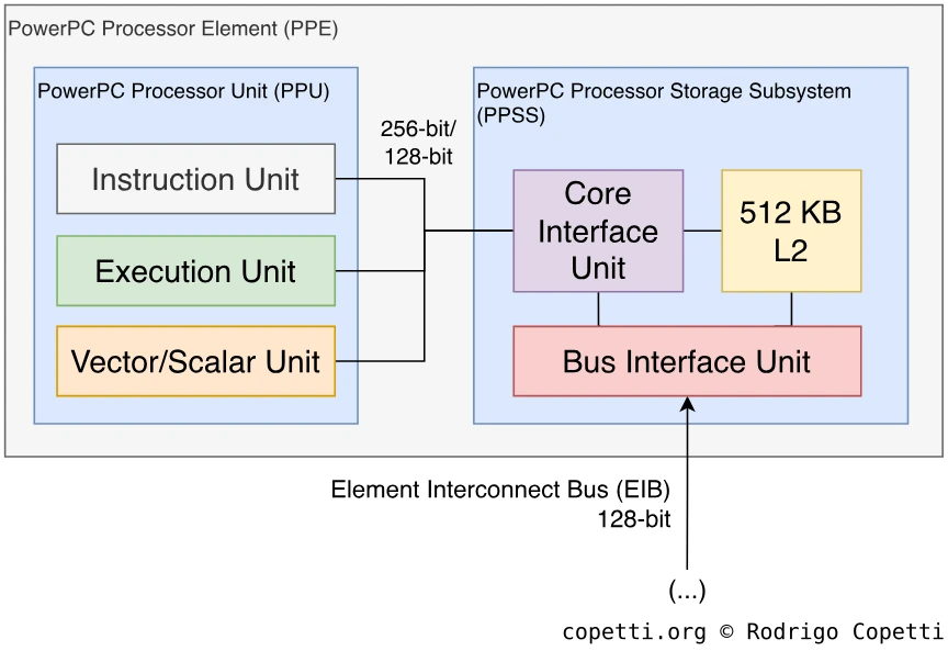 - 就像在Cell处理器中一样,还有其他专有的接口用于调试或维护(例如温度),但这些将在我们到达“反盗版”部分时再提及。