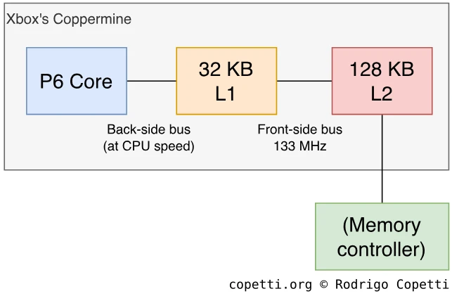随着更大缓存系统的出现,微软和IBM扩展了PowerPC指令集,以适应一些从程序端操作这些块的指令,以防程序员希望进行手动干预(如提前缓存数据或节省L2空间)。 无论如何,标准的PowerPC规范已经提供了dcbt(Data Cache Block Touch,“数据缓存块触摸”)指令,用于从内存中获取数据到L1(每个核心单独)。 然而,微软更进一步,增加了xdcbt(Extended Data Cache Block Touch,“扩展数据缓存块触摸”)来填充L1,甚至不经过L2(所有核心共享)。 这很有意义,因为共享的L2是Xenon的新增功能。 然而,绕过L2是一种风险操作,因为两个核心可能会看到不同的数据(缓存不一致),所以需要程序员正确处理以保持缓存一致性和避免竞态条件。